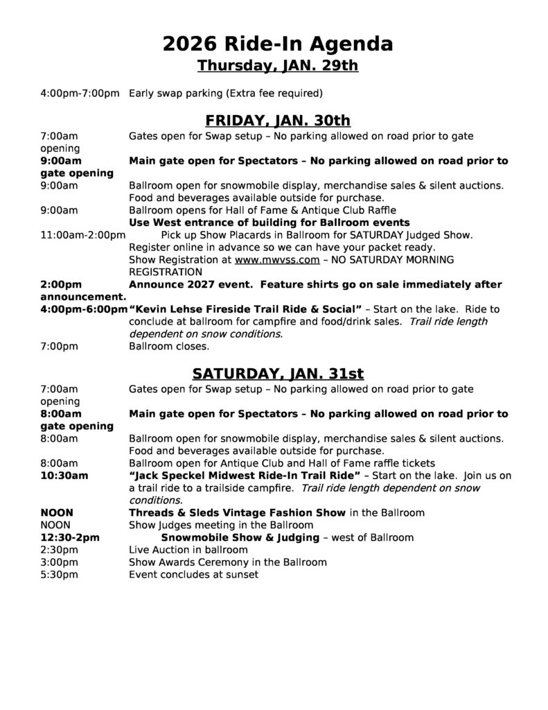 Midwest Vintage Snowmobile Shows, Inc. is proud to announce a new location for the 35th Annual Midwest Ride-In, January 30-31st, 2026.