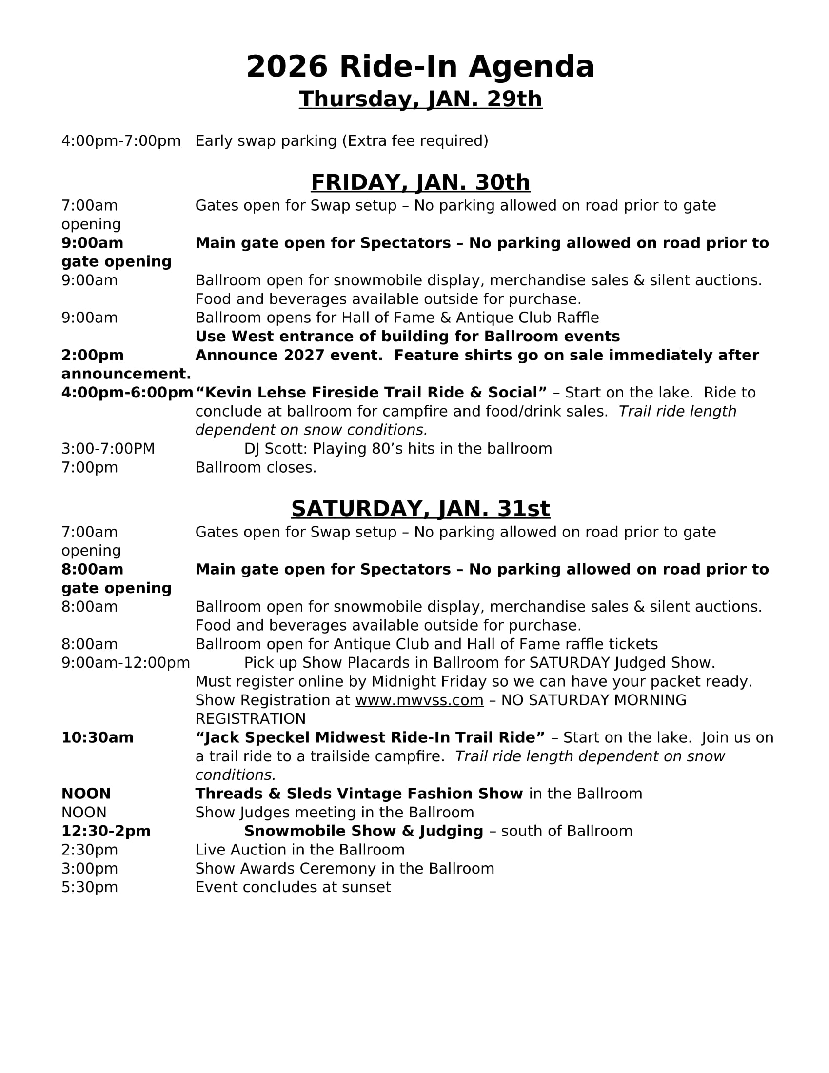 When you pay admission, you will receive a colorful admission tag that you zip-tie to your snowmobile jacket. On the back of the tag will be a QR code, and you can use your cell phone to access our website – for the site map and this show agenda.